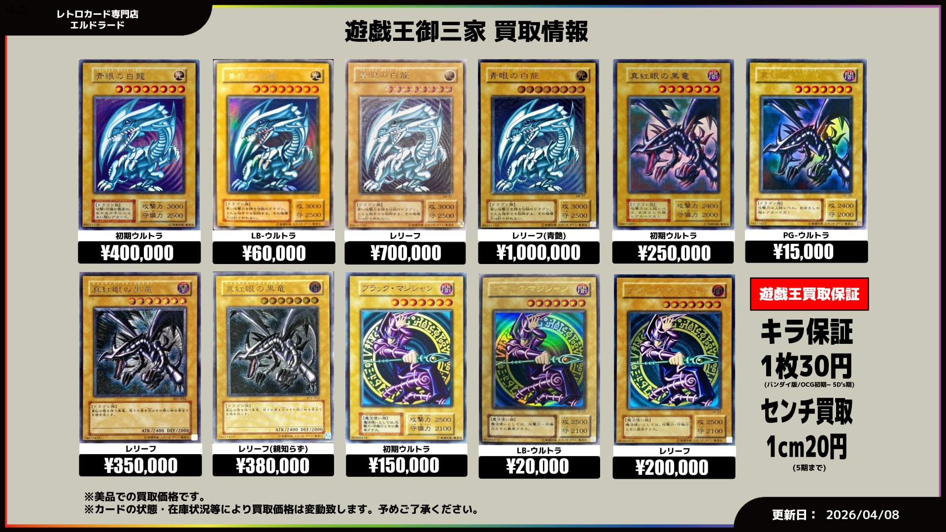 初期遊戯王買取表 | レトロカード専門店エルドラード【宅配買取受付中!】